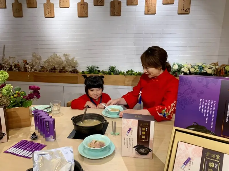 好門媳婦郁方,凍齡養顏與照顧全家的秘密武器今日大公開!暨熱銷全球的蔥蔥回魂麵,金博家創新「食尚」特色產品再進化,為其量身打造高機能性的原盅滴雞湯做為日常保養對策,在方便食用之餘還能隨時補充膠原蛋白;享用此款靚湯不只滋補養身,還能吃出Q彈美肌。現場也首次展示養身美顏系列年節禮盒,將於明年初開始販售。