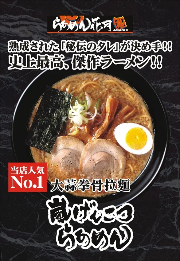 深耕台灣11年以上,以獨特濃厚的重口味招牌「大蒜拳骨拉麵」,與熱絡的用餐氣氛,讓花月嵐始終保持超高人氣。花月嵐最大的特色就是來自日本超高人氣NO.1的「大蒜拳骨拉麵」,獨一無二的自信美味,使用拳骨、上選大蒜與嚴選素材,熬煮出獨特而濃厚秘傳湯頭,深受忠實拉麵迷喜愛。