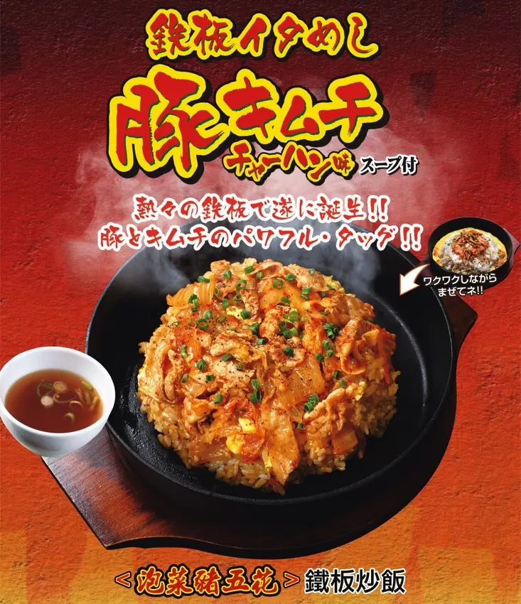 同場加映!泡菜豬五花鐵板炒飯 推薦價$175