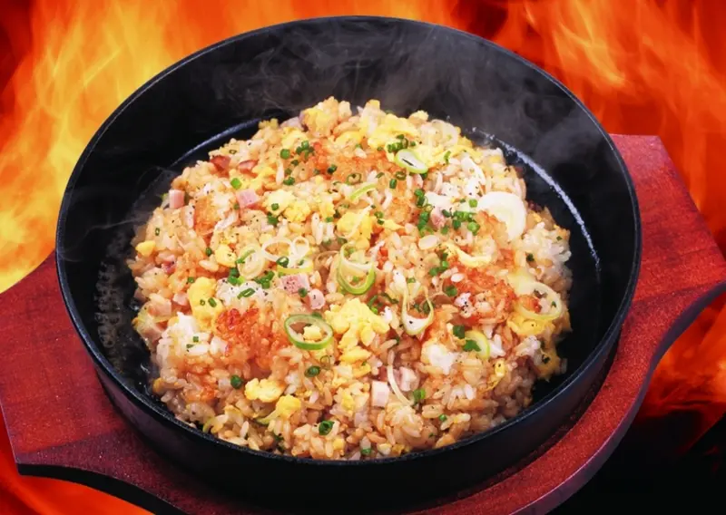 花月嵐原創的體驗型炒飯,使用專門的特製鐵板,讓客人現場DIY拌炒,可以依個人喜好炒出焦香的鍋巴。叭哩叭哩的鐵板上,金黄蛋液、奶油、叉燒丁、蔥花與白飯跳著舞翻滾,淋上祕傳醬油,撲鼻的香氣魅力無敵,鍋粑的口感也大受歡迎,是花月嵐最推薦的附餐,可以選擇再添加自己喜愛的配料,調配出專屬的原創鐵板炒飯。