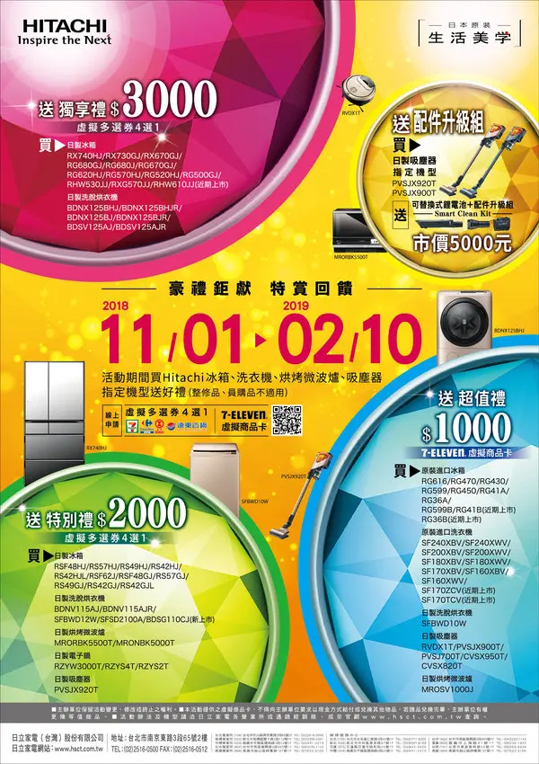 日立家電「豪華鉅獻 特賞回饋」活動專案:https://event.hsct.com.tw/reg.aspx?id=17