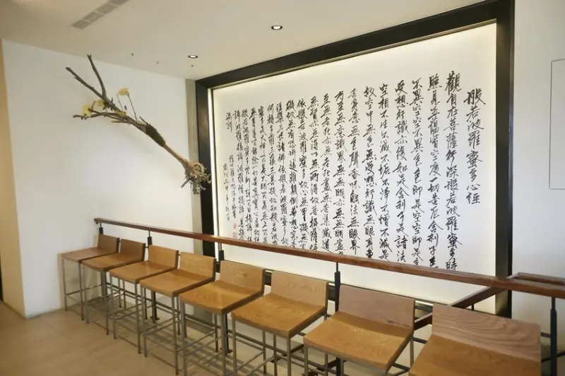 清水模建築搭配富含禪意的環境,大片窗景讓身心放鬆,感受對美食的五感六絕。