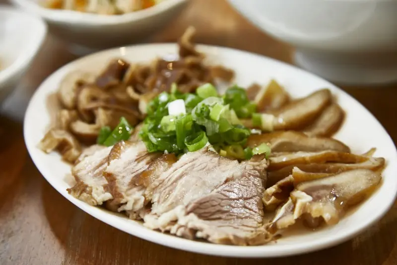 僅取整隻豬最精華的前胛心肉,加入純手工剝切大蒜拌炒調味,夠味卻不死鹹,與手工麵條和在一起入口,口感與香氣正是家常的眷村味,獲得MondeSelection(歐盟世界品質)銀牌獎及亞太區無添加美食協會星等認證,成為店內招牌。