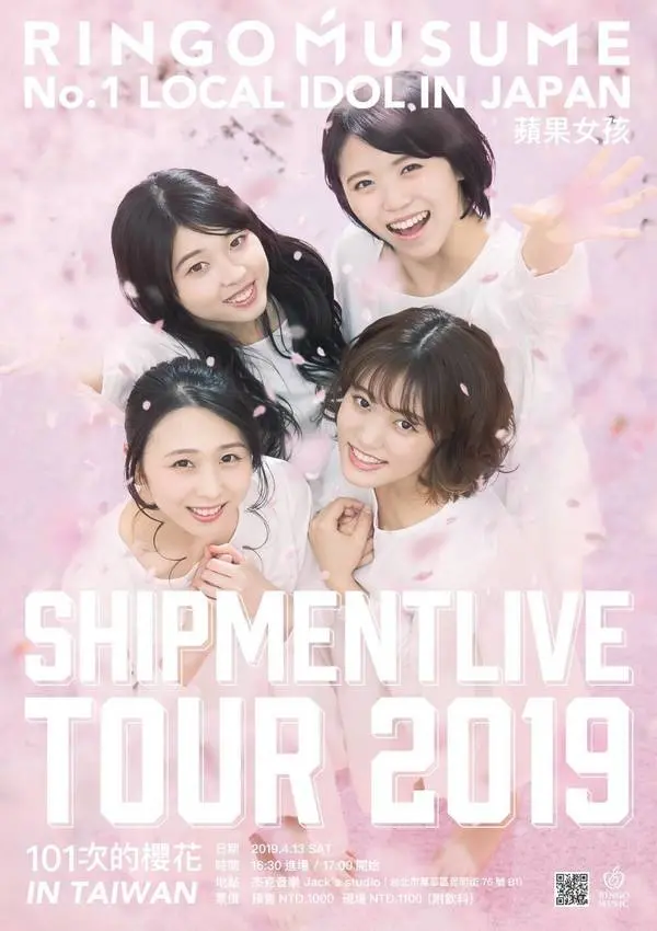 2019年,「蘋果少女」將以「RINGOMUSUME(蘋果女孩)SHIPMENTLIVE TOUR 2019 〜101次的櫻花 〜」為主題,將在東京・福岡・大阪・青森展開日本公演外,「蘋果少女」的海外首站演出,也將於2019年4月13(六)於台灣杰克音樂(台灣台北市萬華區昆明街76號B1)登場。