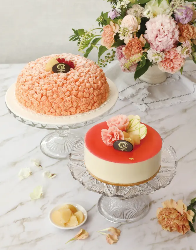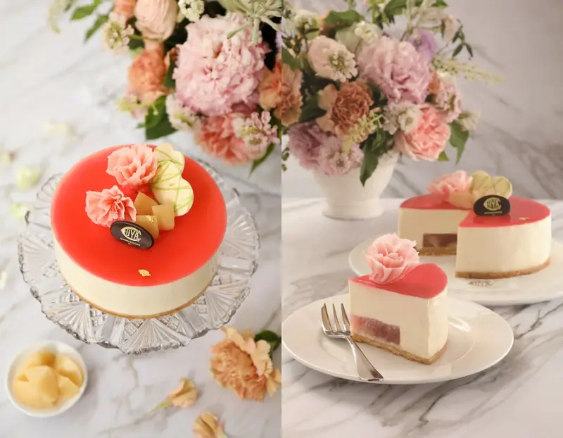 白桃果泥融揉奶油乳酪,口感滑順細緻伴隨自然桃香餘韻,中間疊夾白桃庫利,滋味豐富和諧且甜美不膩;並以手工新鮮製作塔皮鋪底,鬆脆帶有淡淡奶油香氣,與柔軟慕斯巧妙平衡相得益彰,搭配表面光澤剔透的白桃果凍,粉嫩晶瑩宛如寶石,綴以白巧克力製成的康乃馨華麗盛開,寵愛每一位媽咪的少女心。