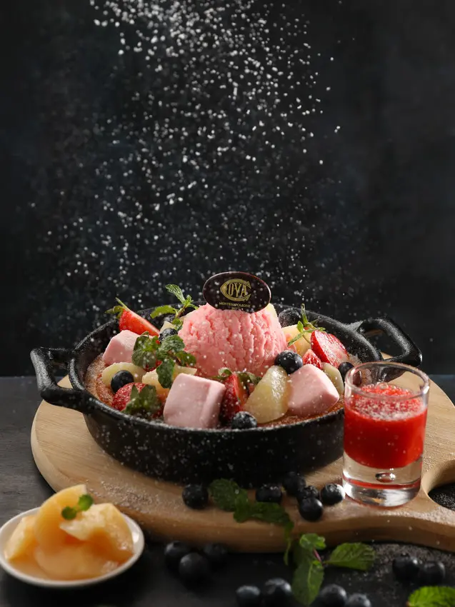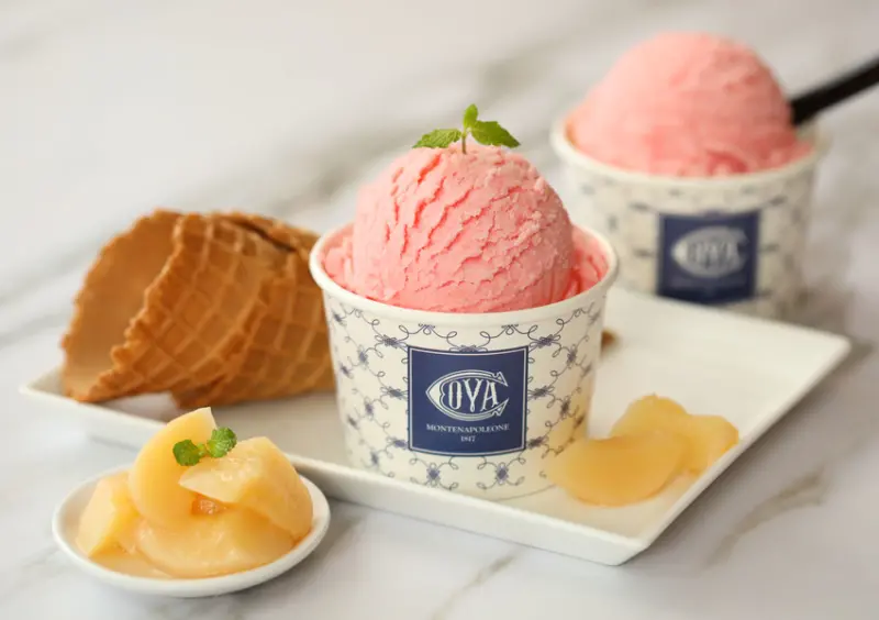 除蛋糕外,主廚更巧思地將白桃滋味結合不同質地和溫度的甜點,賦予多重口感體驗。雪酪本已屬嚐來輕爽且富風味的冰品,結合白桃果泥,桃子本身的清甜隨雪酪緩緩融化舌尖,自然甜美暈散帶來唇齒芳香。