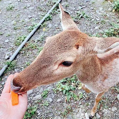 鄰近宜蘭知名景點梅花湖的「斑比山丘」,近200坪的園區有大片植栽樹林圍繞,讓小鹿在大草原上自由奔跑,目前共有25隻台灣梅花鹿讓遊客近距離接觸,入園遊客可以憑著票根免費兌換胡蘿蔔、牧草等零食,讓你一進園就被小鹿「圍攻搶食」。此外園方也特別提醒,請直接讓小鹿將食物叼走,切勿拿食物逗小鹿,否則會造成小鹿的不開心而被撞。![]()