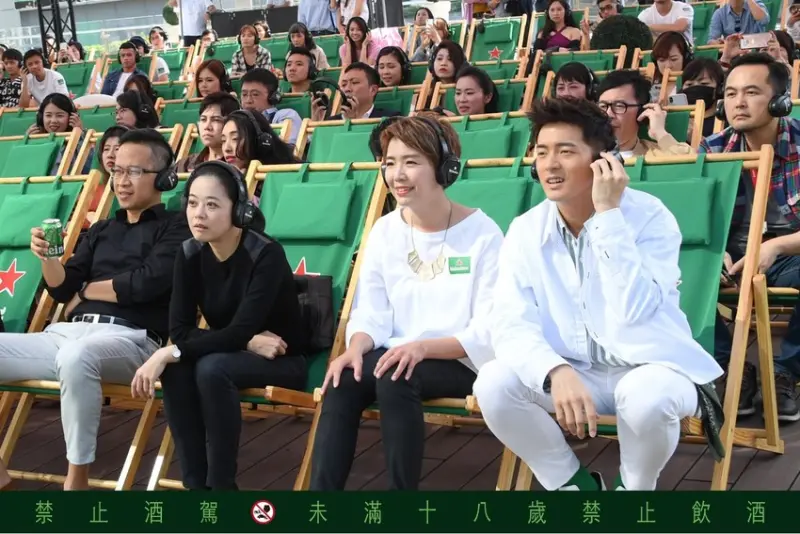 ▲ 海尼根於戶外派對上讓大家戴上耳機觀賞海尼根最新廣告片,體驗任何事都可以跳出原本框架和想法