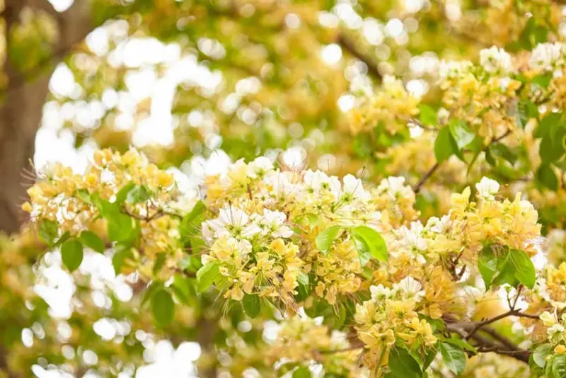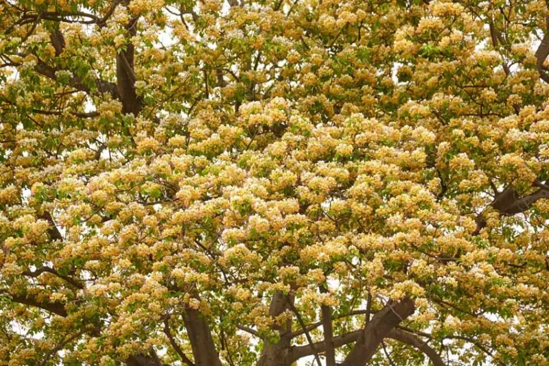 在四月五月會滿開的加羅林魚木,吃飽喝足後一定要拿起手機與這期間限定的金黃色浪漫一同合影。