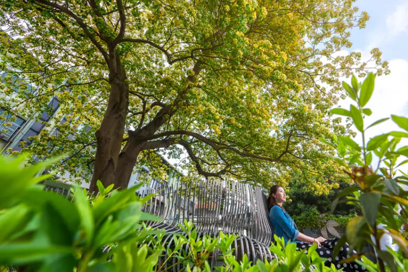 位在溫州公園旁的珍貴外來樹種加羅林魚木,要兩人才能環抱的壯碩主幹,展現經歷數十年的風華,因為台電用心推動的公共藝術計畫,讓魚木結合周邊美化牆面和露天涼椅,成為城南最美篇章,平日繁茂伸展枝枒別有風情,四月間盛開的黃白花朵更是燦爛吸睛!在漫步公館必經的地下道中,除了空間明亮整潔與豐富藝文展演,有空時不妨來趟走讀巷弄人文美食之旅吧!
