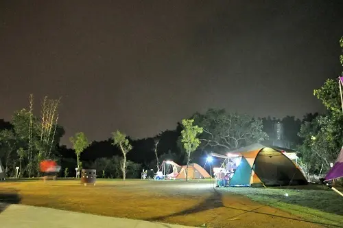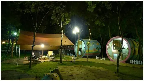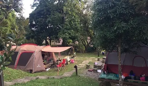 露營區位居海拔約600公尺,氣溫舒適涼爽,獨有綠蔭遮陽的棧板營地設備完善,又可仰望星空聆聽蟲鳴鳥叫,另有設置營釘的星空營位,停放露營車帳篷皆適宜,園區內還有餐廳跟溫泉,是少見離市區近又多元的露營營區。