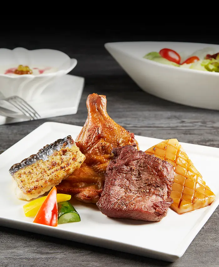 以高溫烘烤保留牛排的原汁原味及鮮嫩,完美的七分熟度,搭配墨西哥香料烤雞腿、蒜香奶油烘烤魚排及醬烤飛捲,滿滿的豐富佳餚,錯過就只能回家捶心肝。