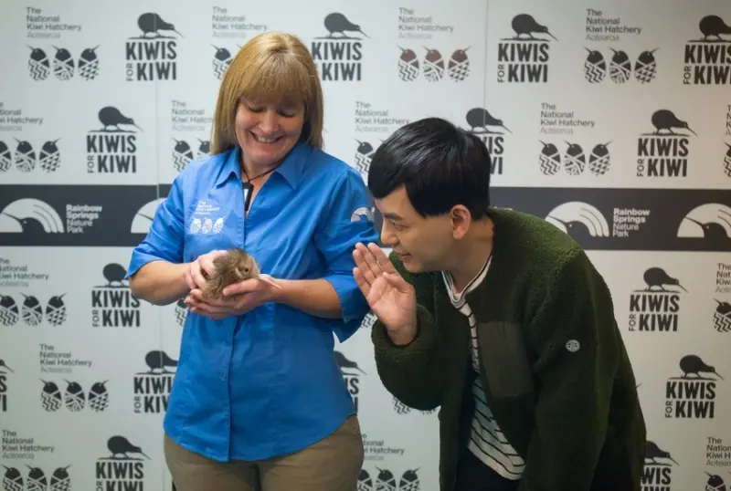 身為奇異鳥Pete在台灣的「代言人」,來到他的家鄉怎能不親自拜訪呢?參觀奇異鳥生態園區時,除了深入了解當地奇異鳥保育工作、一睹才剛出生約三周的超萌奇異鳥baby外,黃子佼更以「元寶」(Treasure) 幫之後即將誕生的奇異鳥命名,創下台灣首位為奇異鳥命名的紀錄。除了生態園區外,黃子佼也跟著訓練有素的保育員前往野外探尋野生奇異鳥,感動難以言表。![]()