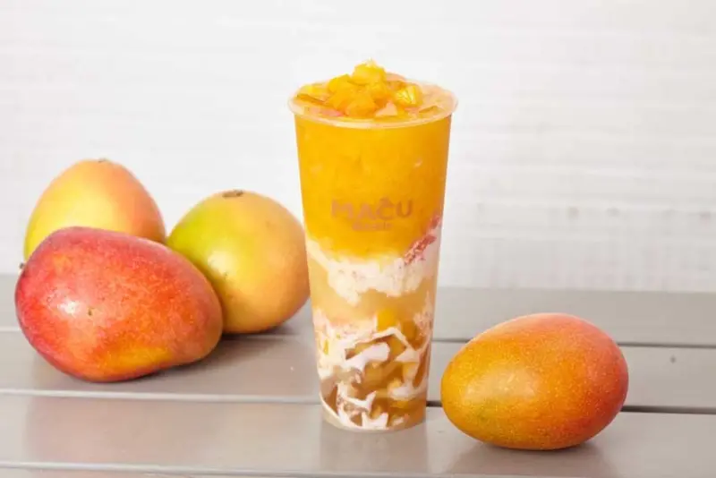 美麗的漸層色好喝又好拍!鮮甜玉井愛文芒果搭配葡萄柚果粒,獨家特製清香的綠茶凍,更是畫龍點睛!
