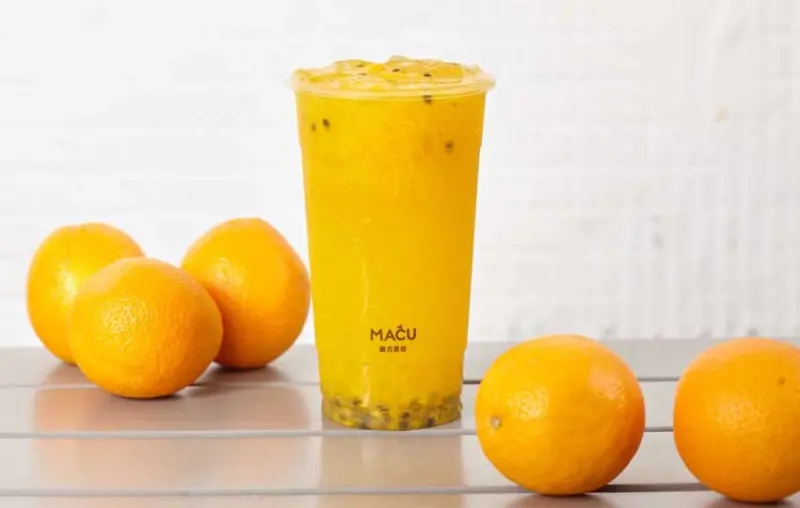 台灣柳橙與百香果粒的結合是夏日必喝的消暑酸甜滋味,也是許多人的最愛!