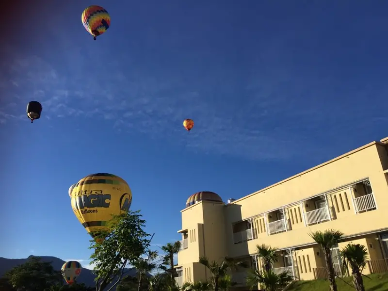 於熱氣球嘉年華期間,貝爾莊園是觀賞熱氣球最棒的景點之一,只要開門,熱氣球就零距離出現於眼前!