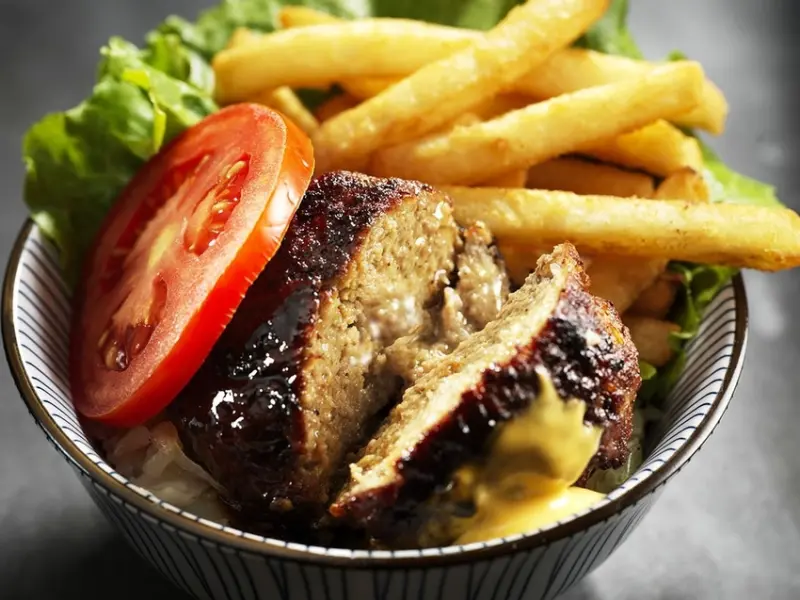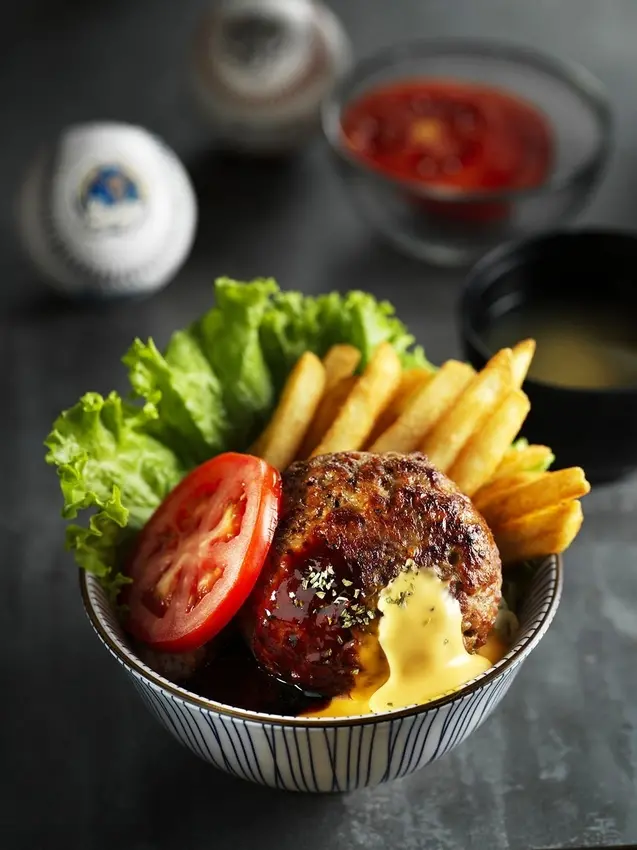 以口感細緻柔軟的球型漢堡為主,最大的特色是「超~多~汁」!柔嫩厚實的咬勁,隨著豐沛的肉汁在嘴裡慢慢化開,恰到好處的美妙滋味,再淋上使用大量蔬菜熬煮成帶有微微蔬菜甜香的照燒男孩醬,及特調金黃起士醬,搭配酥香薯條,和新鮮牛番茄,打造漢堡肉、脆薯、牛番茄完美的黃金三角組合。