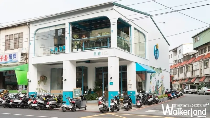 街道上一幢白色系雙拼空間引人注目,繽紛嫩綠的植栽圖樣恣意蔓延牆面,清新感十足的設計風格成為街道亮點。日青咖啡主要結合店主人大女兒拿手的咖啡、甜點與二女兒的烘焙專長,提供將近95%自製的安心健康餐點,傳遞手作溫度。