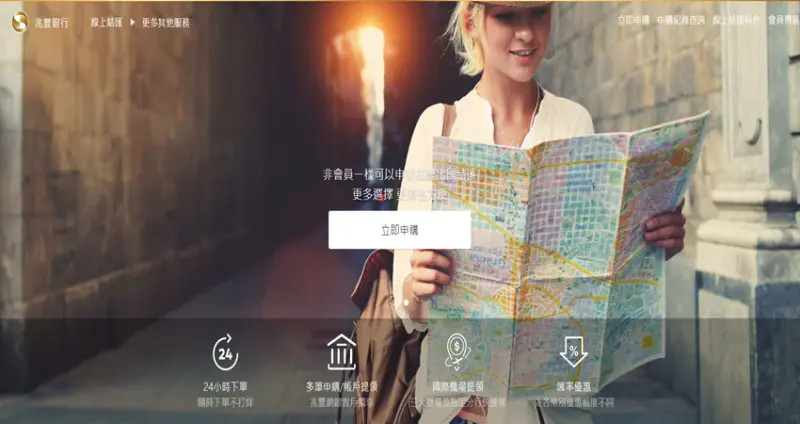 而兆豐銀行為便利民眾購買外幣,推出了24小時線上結匯服務,幣別種類齊全,多達18國外幣現鈔、6國旅行支票,面額張數還可自由搭配,更棒的是,提供當日提領的服務,解決當日急需使用外幣的民眾,在此結匯服務上,無論您是否為兆豐銀行客戶,皆可享有匯率優惠及免手續費之優惠,讓您想換就換、出國旅遊說走就走。而在領取外幣現鈔服務上,可指定鄰近分行或選擇於出國當日至兆豐銀行松山、桃園或高雄機場分行提領,出國買外幣完全不用再趕銀行三點半,又可省去銀行等待時間。