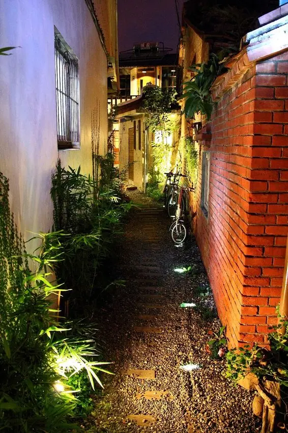 ▲(左圖)從巷口望去的百年老屋,呈現葫蘆型的開闊感,特別擁有台南獨有的懷舊復古氛圍。/(右圖)穿越紅磚碎石小巷,來到鬧中取靜的老屋民宿,重現當年風華樣貌。