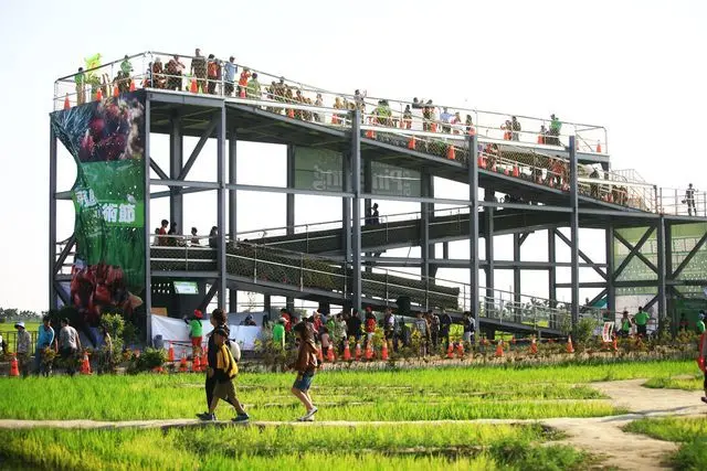 TIPS:活動現場特別搭建了一座九公尺高台,讓人能從空中一窺全貌,在高台上無須考慮攝影背光及取景等細節。但需排隊領取彩稻觀賞號碼牌,每梯次可觀賞10分鐘。