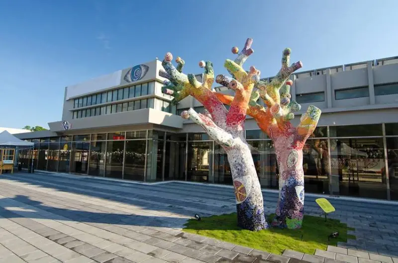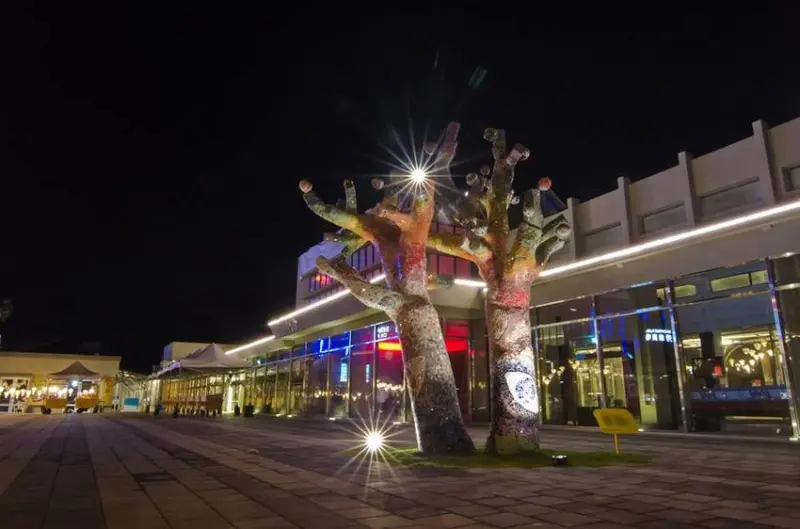 鐵花新聚落的四件大型公共藝術作品已陸續完工,其中座落於台東轉運站(舊火車站)前廣場的「夢中樹」,是藝術家饒愛琴老師以其擅長的複合媒材馬賽克,重新詮釋舊站風華,拼貼出老台東的新美麗。