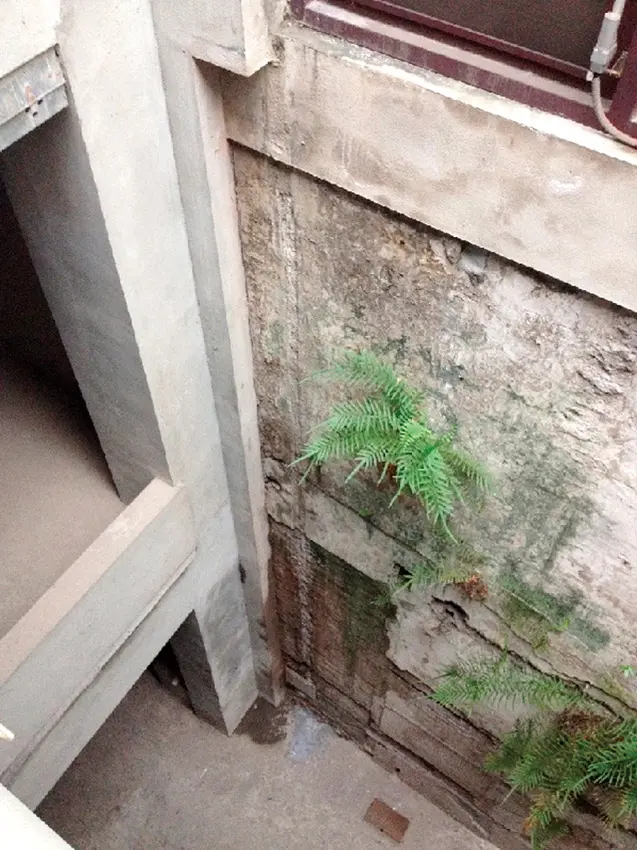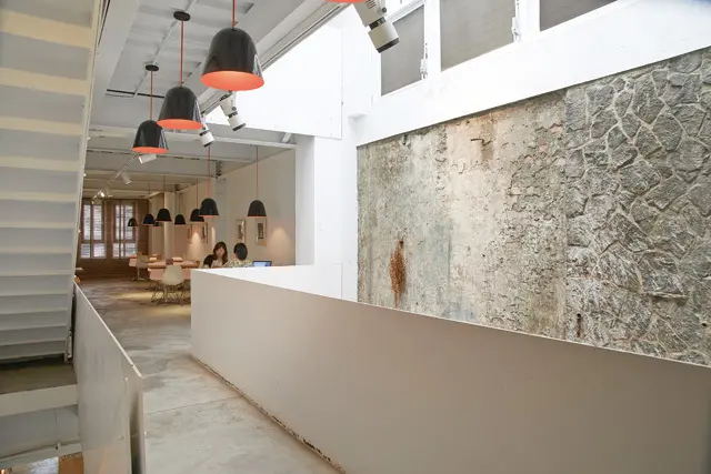 老屋原先的建築設計即擁有穿透三個樓層的天井,進行修復改造之時,設計師決定維持天井的架構,藉此保留這棟建築的生命軌跡,也保留天井後方牆面的原始樣貌,使其持續傳遞時光故事。