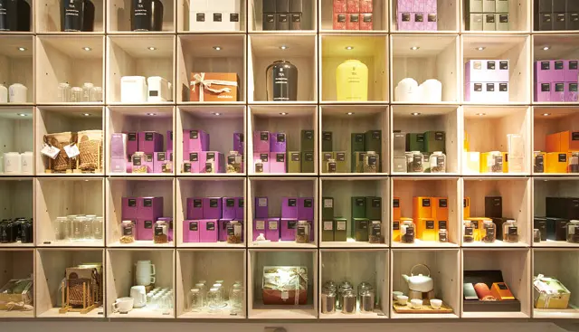 ▲店內除了提供飲茶、酥餅等餐點,另設置展售區販賣自家的茶葉、茶具等產品。
