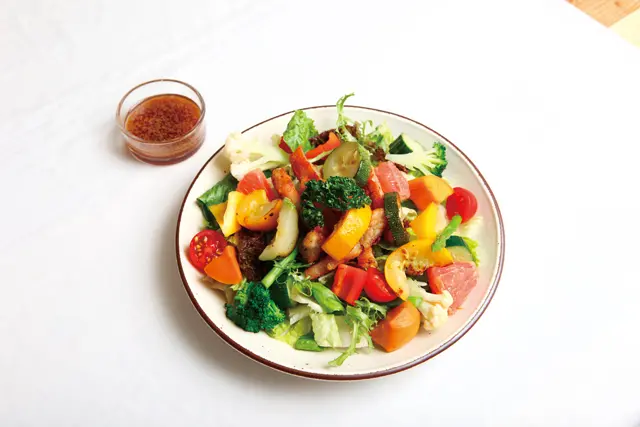 ▲綠巨人雞肉沙拉150元/老闆每天採買各式新鮮蔬菜,把食材細心切成一口大小,淋上特製醬汁,就是一盤份量像小山的營養沙拉。