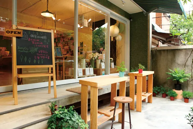 隱身中山女中校區後方的巷弄中,這一帶有不少名人居住,環境相當安靜,咖啡館的主人也是看中這一點,把店設在這裡。咖啡館坐落民居當中,也結合花店的經營模式,主人引用原來的毛胚屋格局,牆面塗上白漆,並保留優美的老地磚。