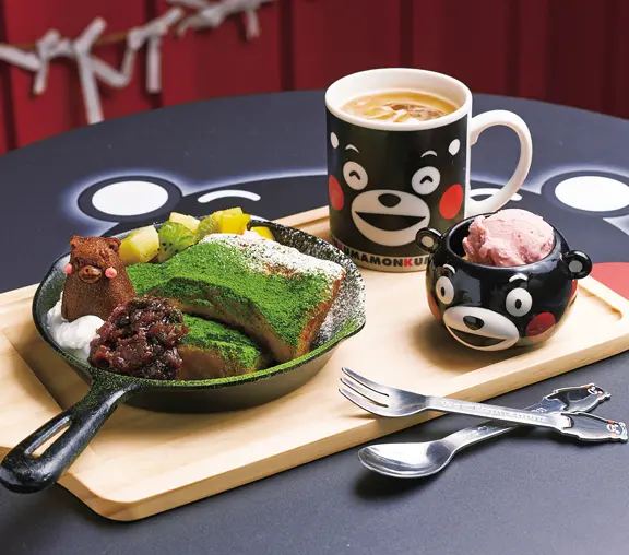 店內主要提供鬆餅、法式吐司餐點,搭配KUMAMON馬克杯咖啡,吸睛可愛的午茶組合,幸福指數百分百。來到這除了享用可愛餐點,以貨櫃裝載周邊商品的販售區,也讓人驚喜!
