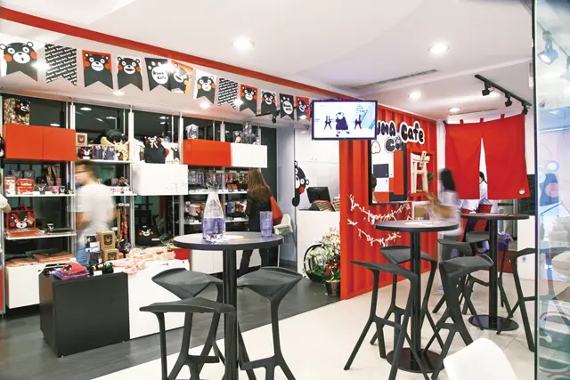 特別以日本九州熊本縣吉祥物KUMAMON為主題的超人氣咖啡館kuma cafe在台亮相!走上位於二樓的店面,KUMAMON紅、黑、白主視覺色系的空間設計童趣十足,搭配主題曲的播放,整體氛圍洋溢一股輕鬆活潑的氣息。