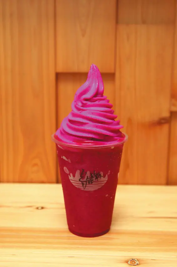 ▲火龍果霜淇淋+冰沙100元/以新鮮的火龍果製作,下為冰沙,上面為霜淇淋,隱藏版限量供應,每日口味不同,想嚐鮮要關注臉書喔!