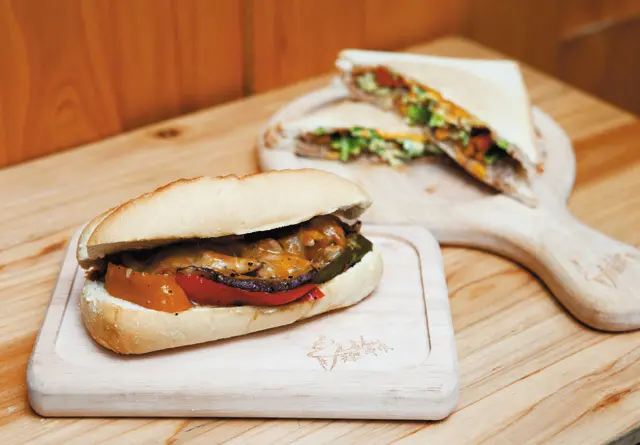 ▲起司雞肉潛艇堡60元(前)/新鮮蔬果加上雞肉與起司的美味。鮪魚夾堡40元(後)/清爽好滋味。