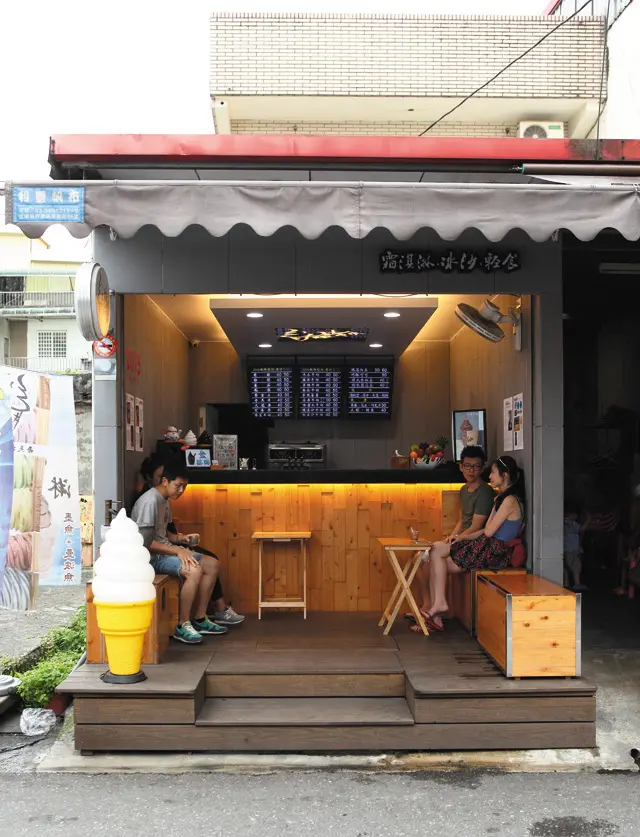 店內主打天然手作霜淇淋,店主人研發出多種口味的霜淇淋,尤以假日限定的墨魚霜淇淋為招牌商品!黑色的霜淇淋就已經很有噱頭了,略帶鹹味的墨魚口味更成為話題,下方還有滿是膠原蛋白的曼波魚凍,創意口味廣受好評!