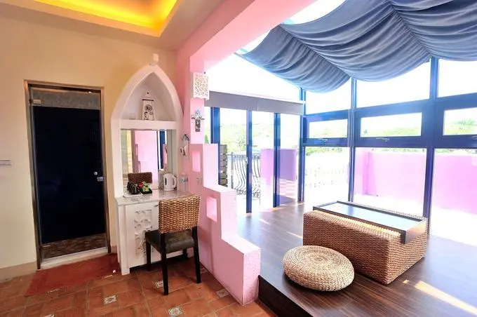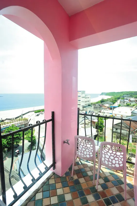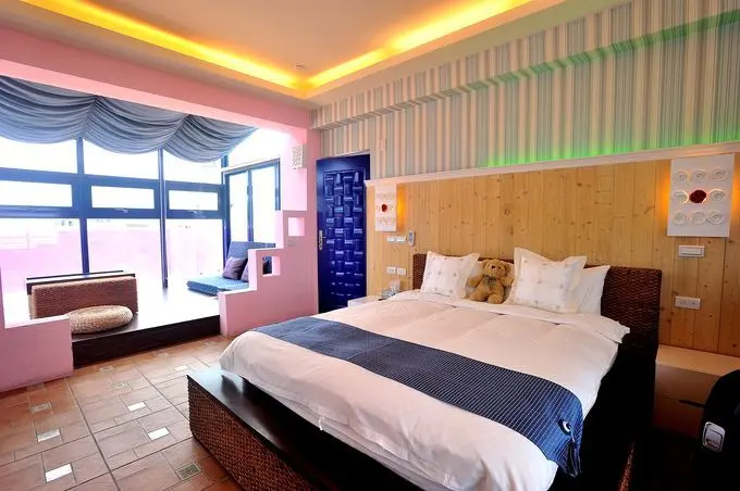 以紫色為基調,搭配鮮豔的黃及粉紅色,在藍天碧海的七星潭景區頗為耀眼,所有客房都出自於主人的巧思,間間皆有專屬露臺,不同主題色彩,大面採光,處處明亮且不失浪漫情懷,一派海灣度假飯店風情。海岸近在咫尺,數步之遙,觀浪散策,吹風揀石,看盡後山月昇日起;啖海鮮、吃冰棒,或騎單車或步行,倦了便回到民宿,喝杯下午茶歇腳,愜意十分。