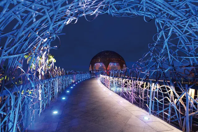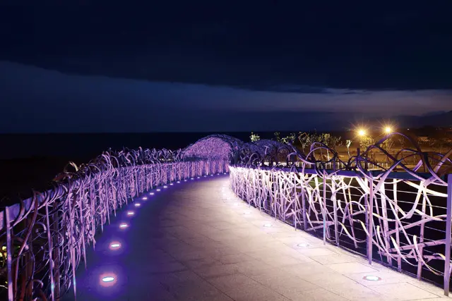 位於台東海濱公園的國際地標,是一座結合人文、自然景觀的大型公共藝術裝置,藤編的造型圓頂十分吸睛,漫步於景觀步道上則可感受到濃濃的海洋氣息。每到夜間點燈時刻,在炫麗燈光的照耀之下,更顯現出另一種迷人風情。