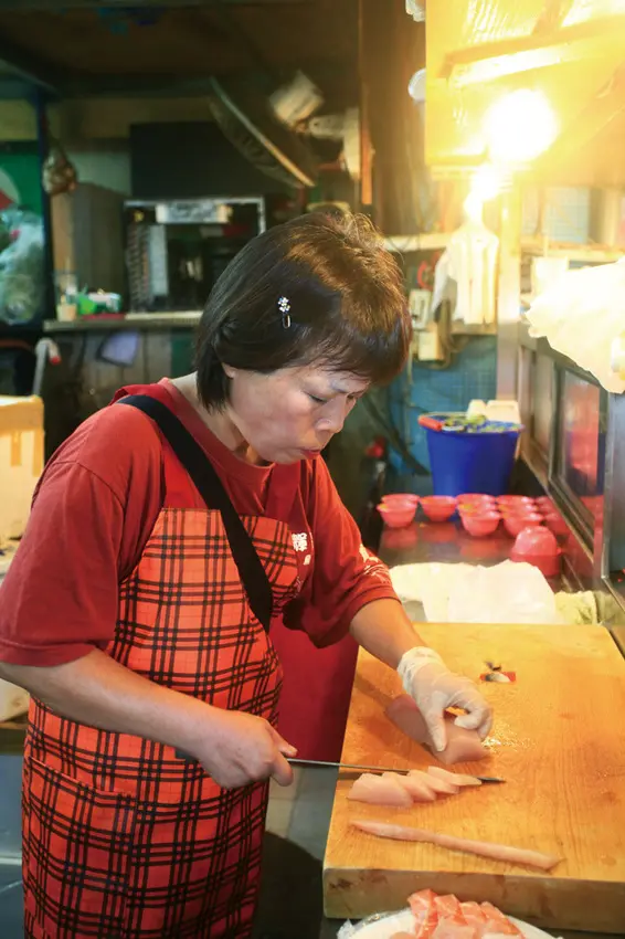 ▲這裡的生魚片,片片厚實,慕名而來的顧客讓老闆切生魚片的手都沒停過。