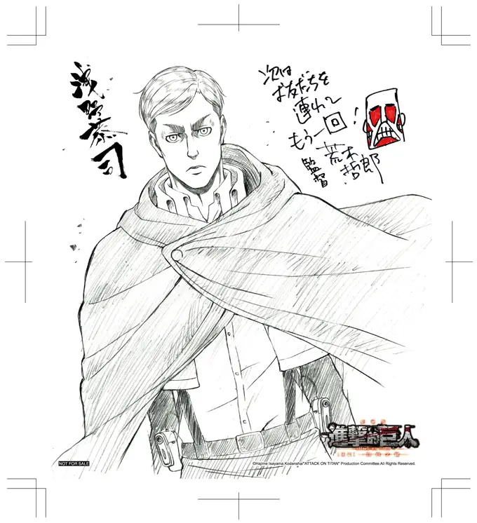 預售票限定贈品延續前編風格為限量「電影紀念簽繪板」,由動畫監督「荒木哲郎」與總作畫監督「淺野恭司」共同為劇場版特別設計,前編推出五款,分別是阿爾敏、約翰、巨人、艾連、米卡莎,造成動漫迷搶購收藏熱潮。後編將帶來另一波驚喜,再次推出五款「電影紀念簽繪板」,首波公開圖面為調查兵團團長「艾爾文」,另四款將陸續於7月18日、7月24日、8月1日與8月8日公開於木棉花官網,想一一收藏的朋友,7月24日起可至「木棉花購物網」、「博客來售票網」與「買動漫」網站預購電影票,單張預售票只要250元,而且隨機贈送一款,預期將再次掀起搶購收集熱潮!
