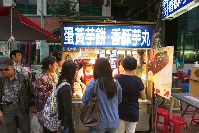 不論平日假日都必定會排隊的攤子非「劉芋仔」莫屬,沒吃到可別說你來過寧夏夜市!也許這麼說是誇張了些,但更突顯香酥芋丸和蛋黃芋餅的超人氣,老闆精選甲仙芋頭,每顆芋丸都是手工製作。