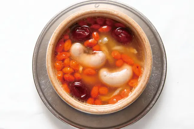 雞胇腳筋/200元/以雞胇、生腳筋加當歸、紅棗和枸杞熬煮兩小時完成,選用生腳筋主要原因在於比較彈Q。