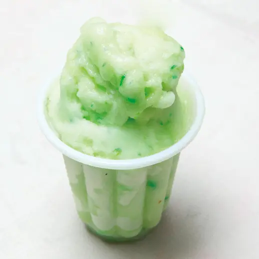 泡泡冰(情人果)/45元/情人果口味的泡泡冰,除了酸酸甜甜的滋味,還能品嚐到小顆的果粒,讓人吃了還想再吃。