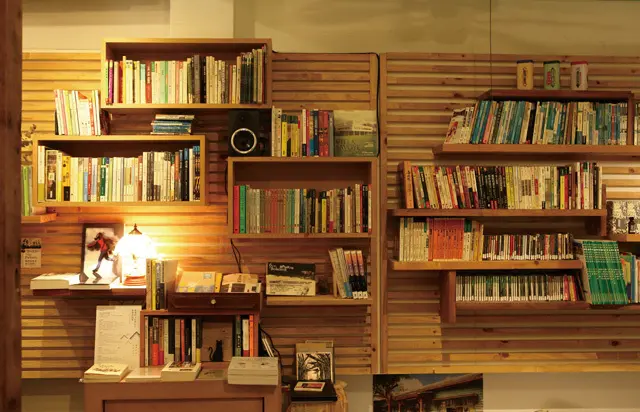 ▲牆上是透過台北註書店的選書,還有部分老闆娘的藏書,種類很豐富。