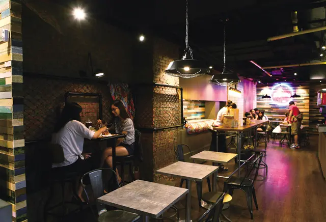 ▲館內風格採工業風,如木板牆與紅磚牆的運用,以及鐵架與鋼材的裝飾。