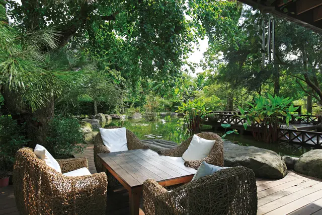 ▲充滿各式花草樹木的花自在園區,坐下來即可感受融合自然與禪學的氣味,尋得難得緩慢生活的快樂與悠閒。