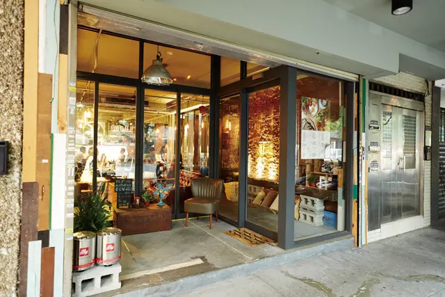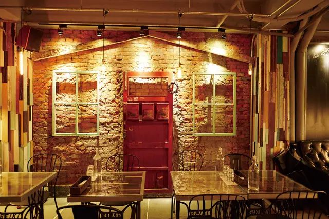 ▲老房子留下來的紅磚牆,是NaiYe Cafe奈野3店的最大特色。