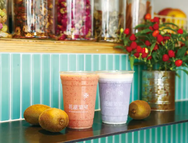 花甜果室是家散發日式清新風格的果汁舖,主打天然的新鮮蔬果汁,在越來越注重養生的世代裡,希望讓大家都能健康樂活。店面以淺色系的色調,搭配花草植物做裝飾,飲品則選用當季新鮮水果,店主人不斷研發新口味,讓嚐鮮的客人總能有驚喜!店主人希望透過有別傳統現打果汁的印象,以精緻的形式來推廣蔬果汁。在有著日式風格的舖子,享受新鮮果汁,便是花甜果室想帶給大家的幸福。