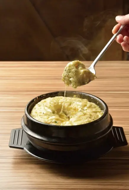 ▲熔岩起司蒸蛋240元/選用產銷履歷新鮮雞蛋,加入高湯,再鋪滿馬茲瑞拉乳酪絲,美味又迷人。