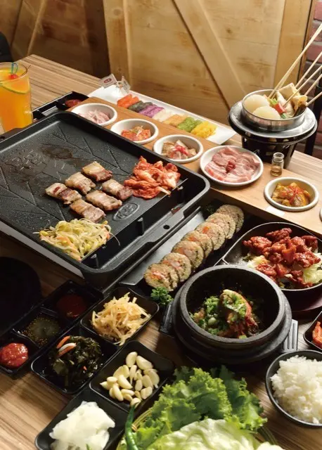 ▲韓斤麻浦擁有豐富多樣的韓味特色料理,尤其以焰彩七味燒最為人氣,一次可以吃到原味、泡菜、BBQ、咖哩、腐乳、辣醬等七種口味的五花肉,絕對滿足!五味紫菜飯捲、辣炸雞、石鍋飯及阿珠媽黑輪湯,也都是不能錯過的菜色。