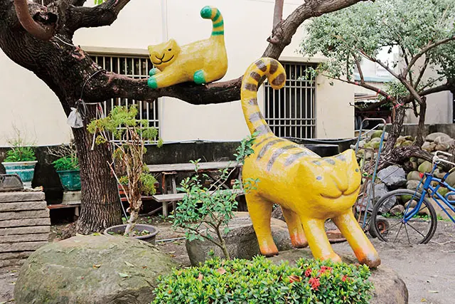 ▲隱藏在民宅的貓屋公園,是貓咪彩繪村的第一代景點,近來又多了許多不少 新的彩繪與公仔。